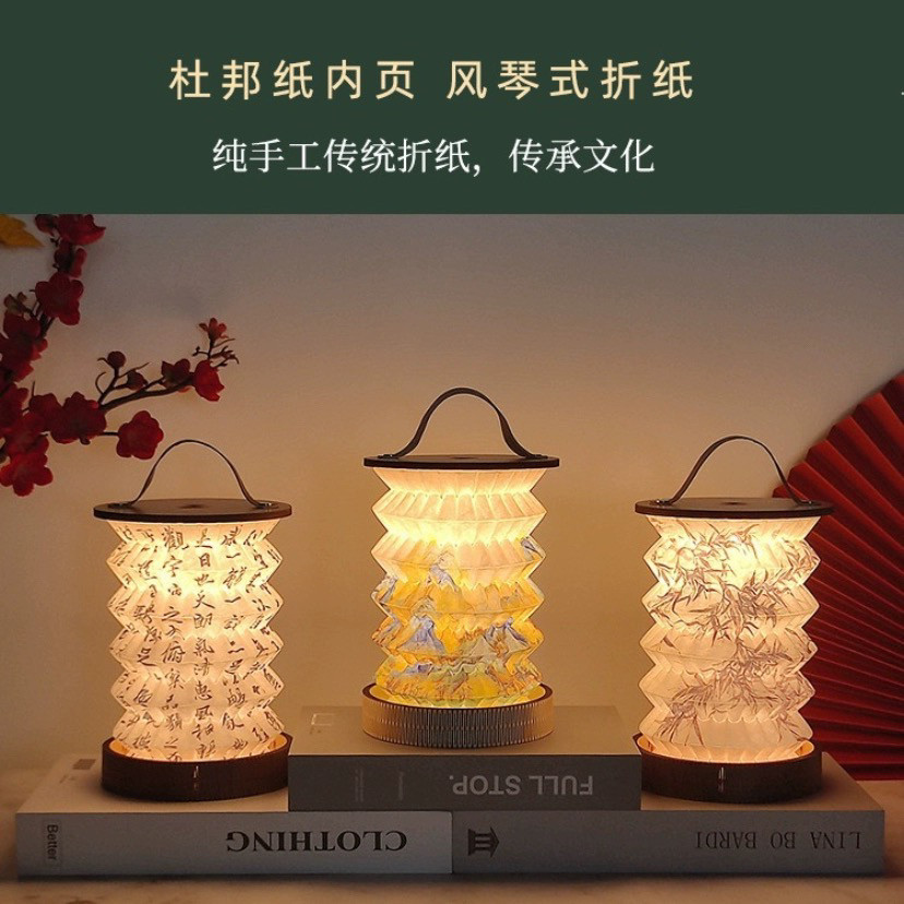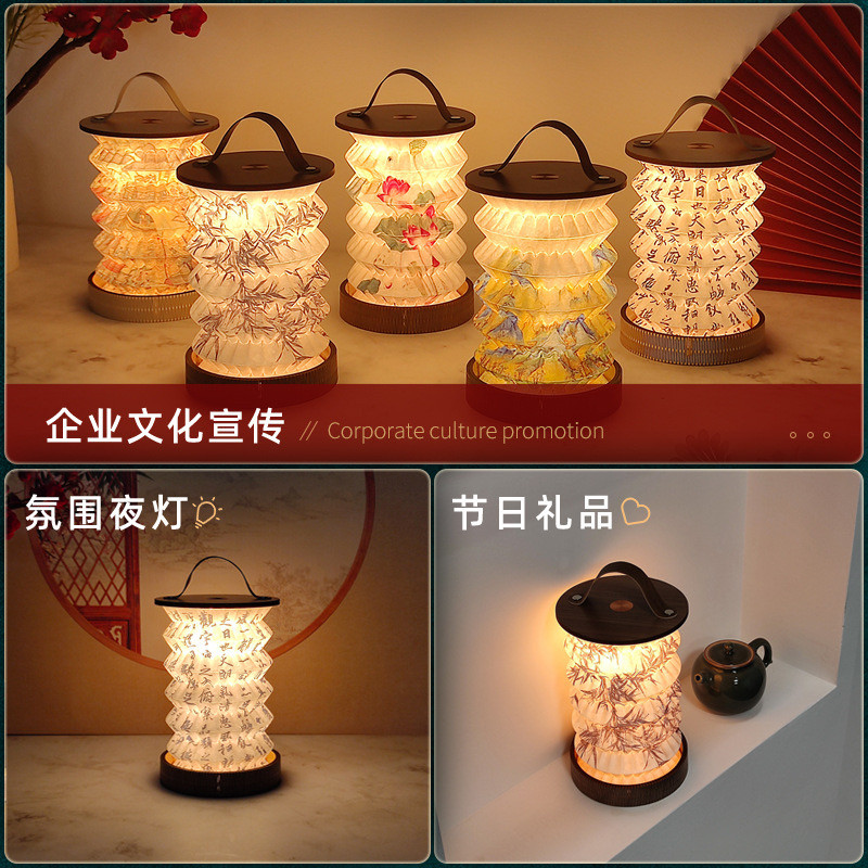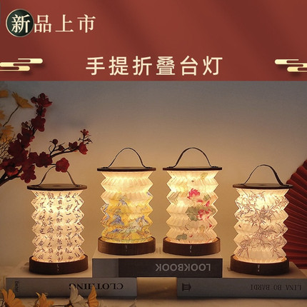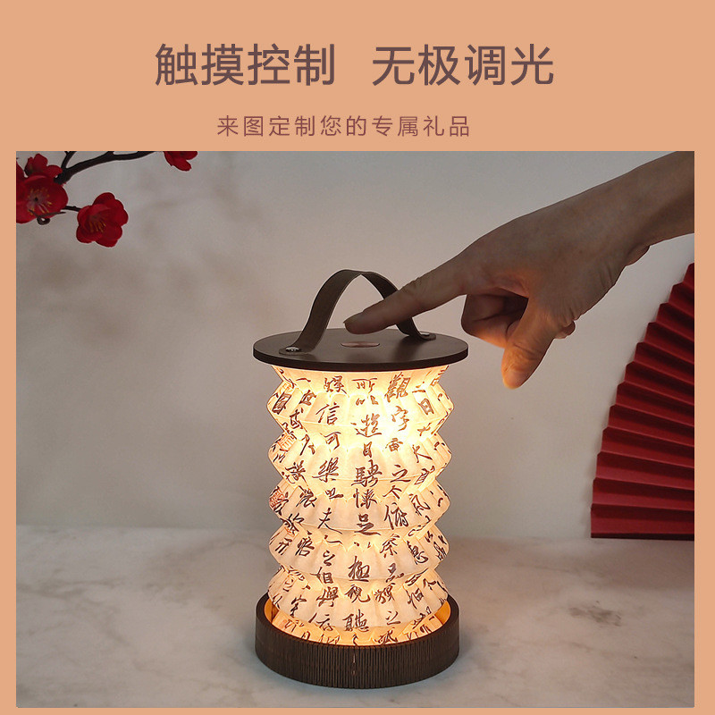 创意折叠台灯触摸调光手提小夜灯复古氛围灯笼文创生日礼品露营灯