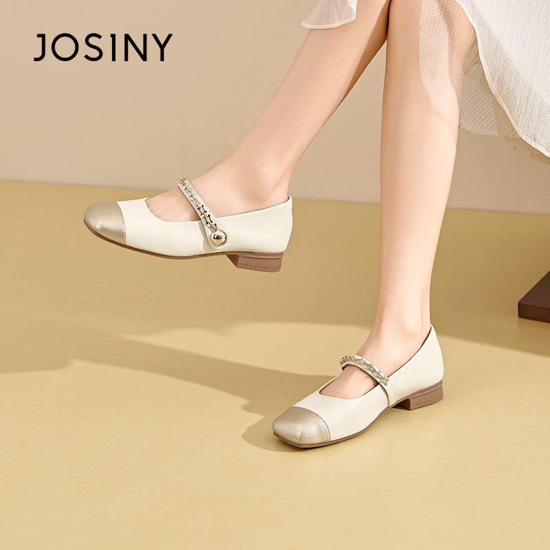 卓诗尼女鞋玛丽珍款春季鞋新方头粗跟单鞋百搭气质名媛风低跟女鞋