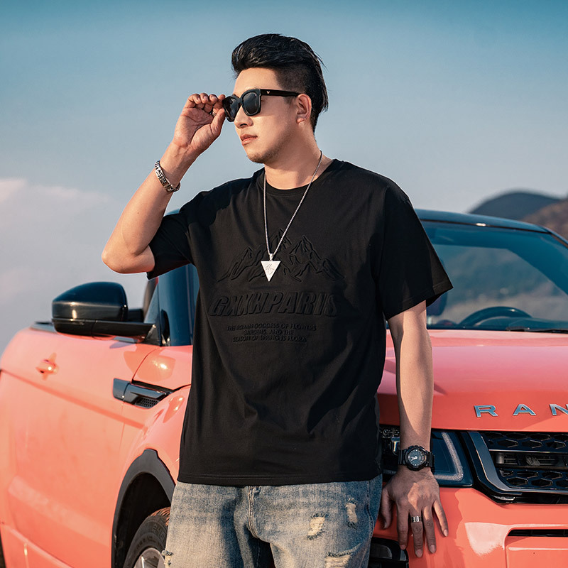 潮牌超大码男装加肥短袖T恤潮胖子加大号男士肥佬夏季半袖花上衣