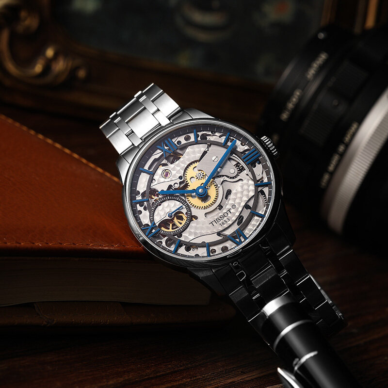 新品瑞士天梭杜鲁尔系列防水钢带机械男表正品T099.405.11.418.00