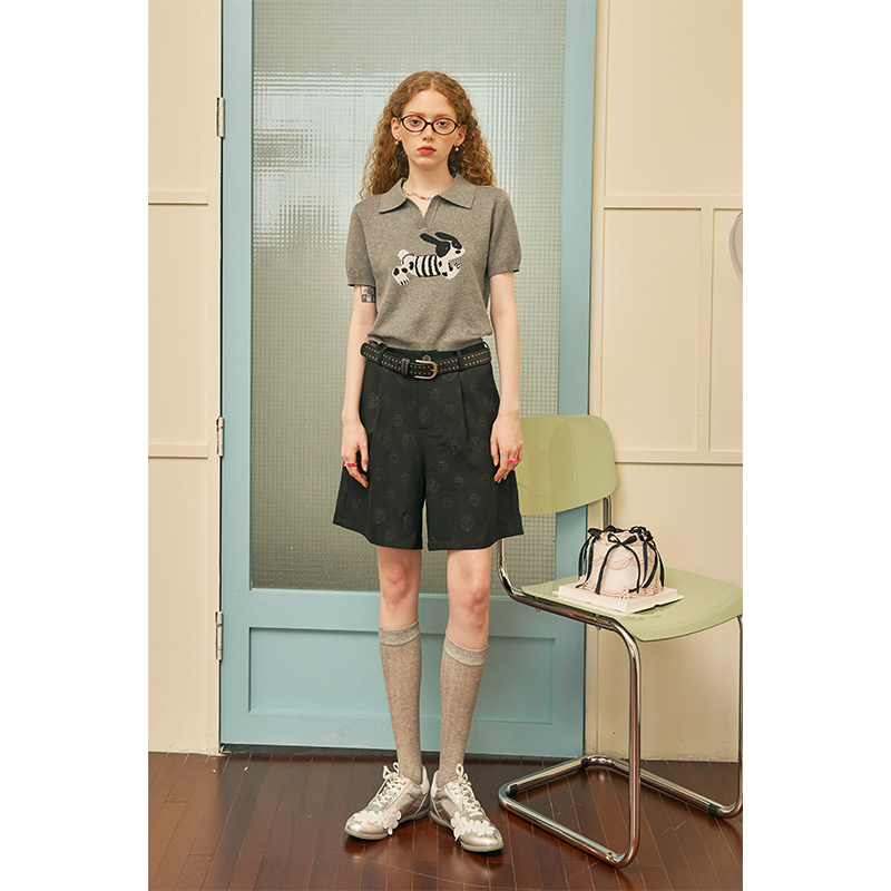 DIDDIMODA "飞奔的小狗"小翻领纯棉短袖百搭polo衫针织短袖上衣夏