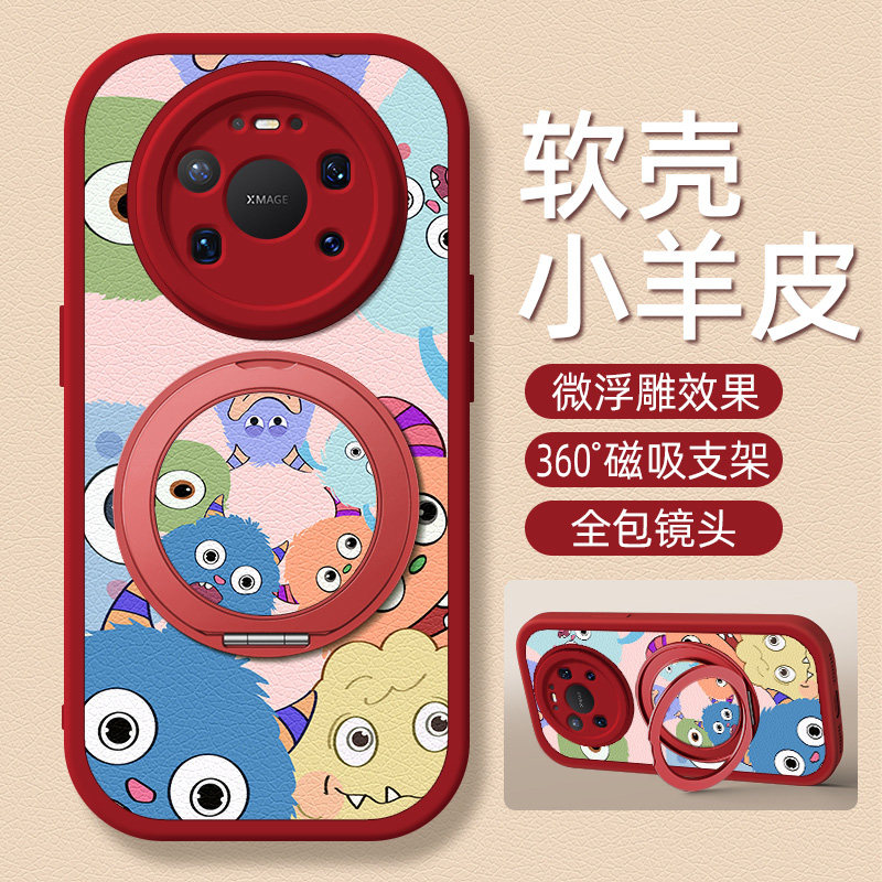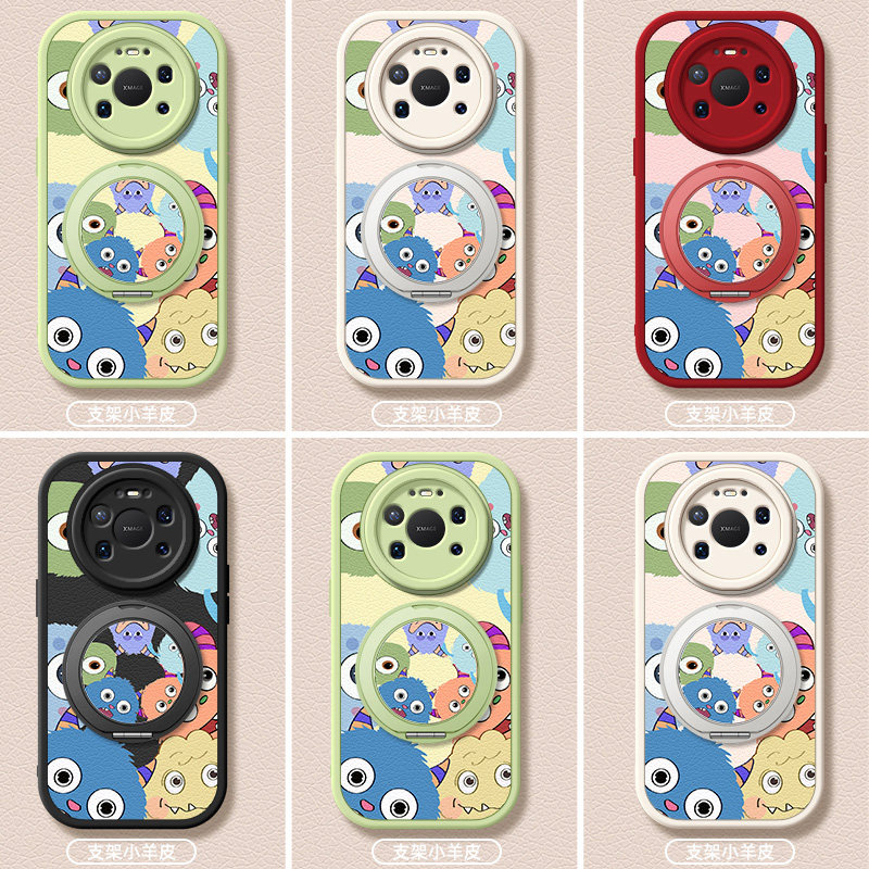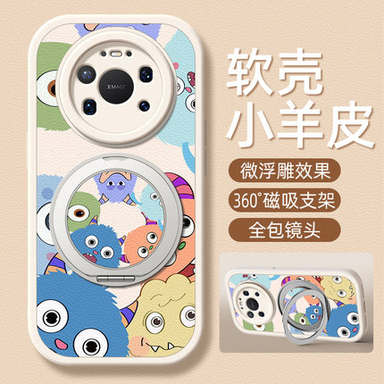 怪兽家族适用华为mate80手机壳mate80promax新款磁吸支架保护套mate80pro全包防摔mt80小羊皮外壳卡通可爱