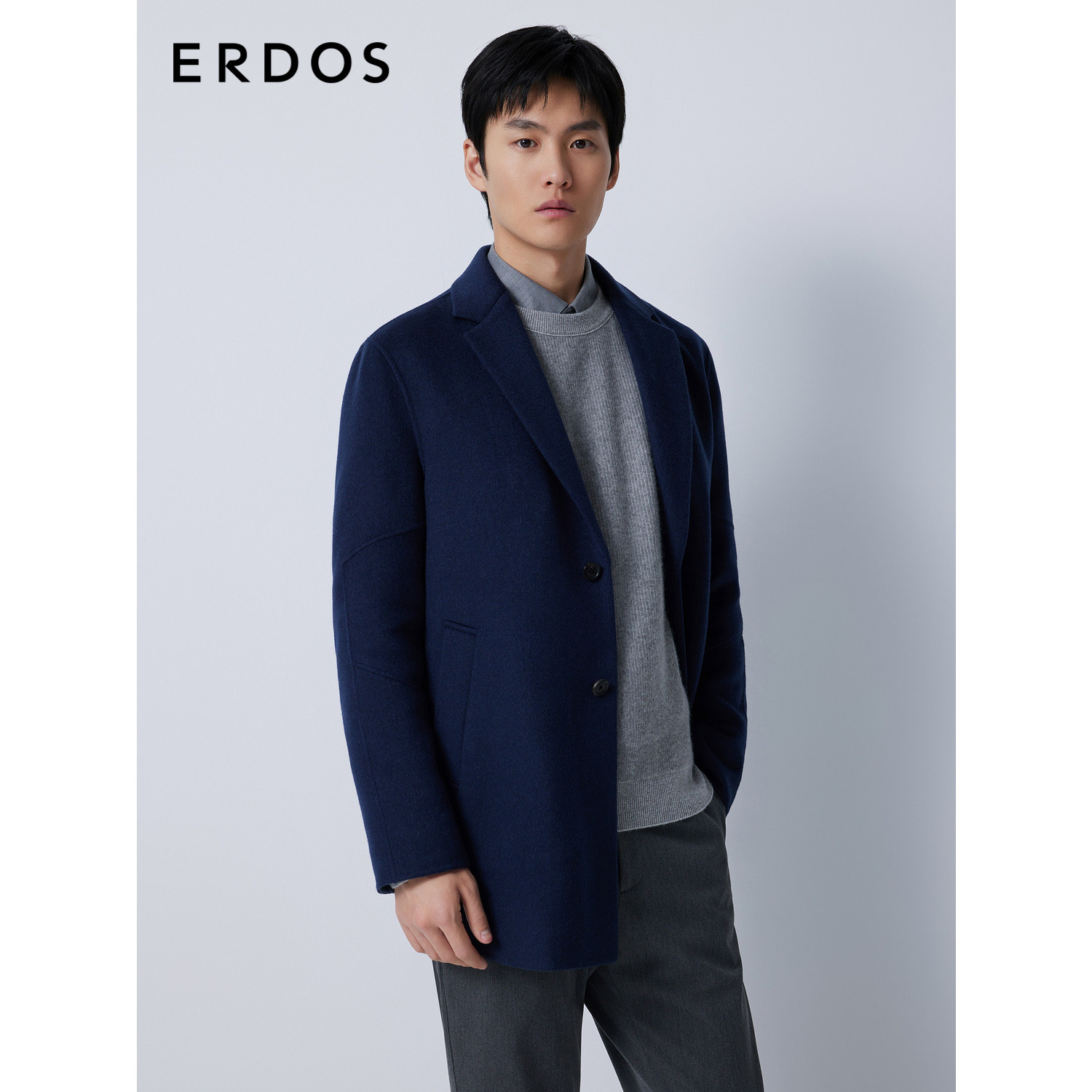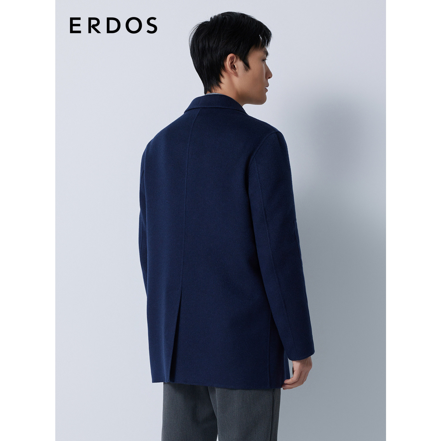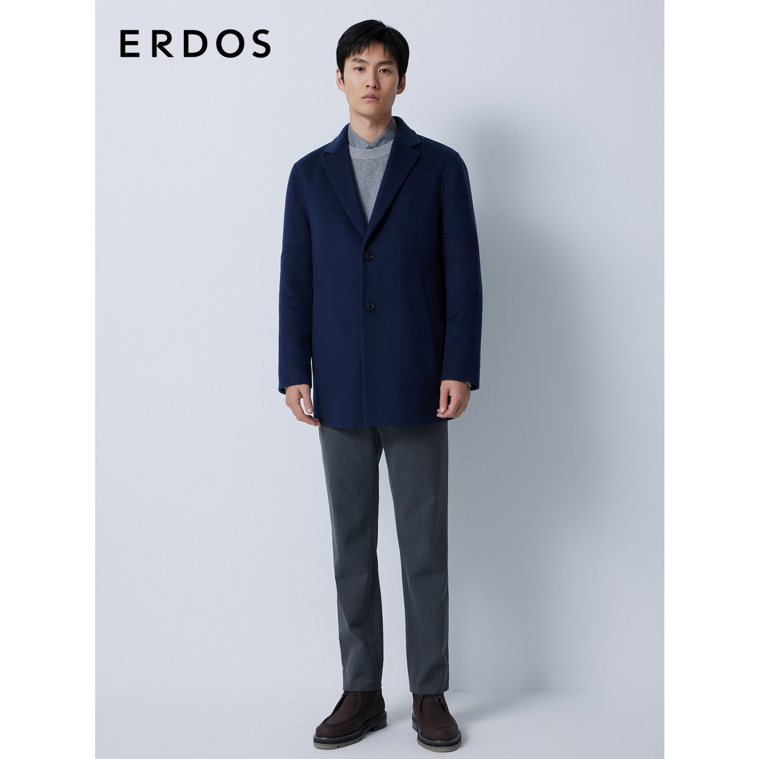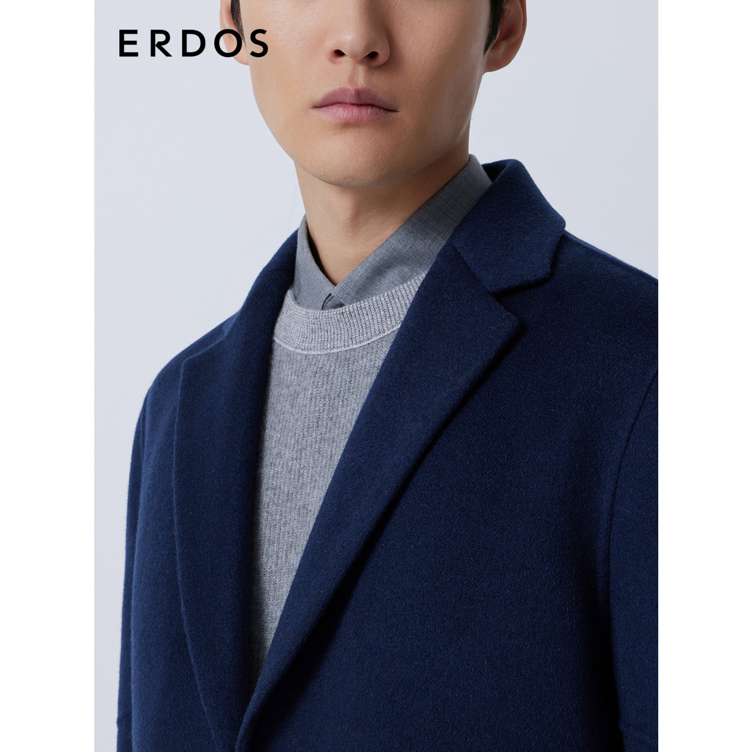 【羊绒大衣】ERDOS 男装秋冬西装领藏蓝单排扣厚款外套商务通勤