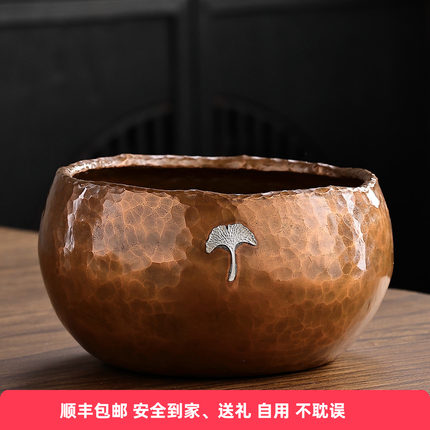 紫铜茶洗 建水 整张铜锻打加厚 杏叶笔洗家用水洗水盂 洗茶杯盆