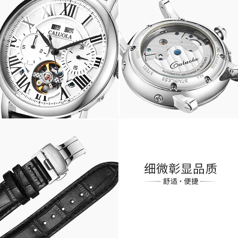 新款卡罗莱飞轮全自动机械表男士手表男表正品牌多功能皮带防水潮
