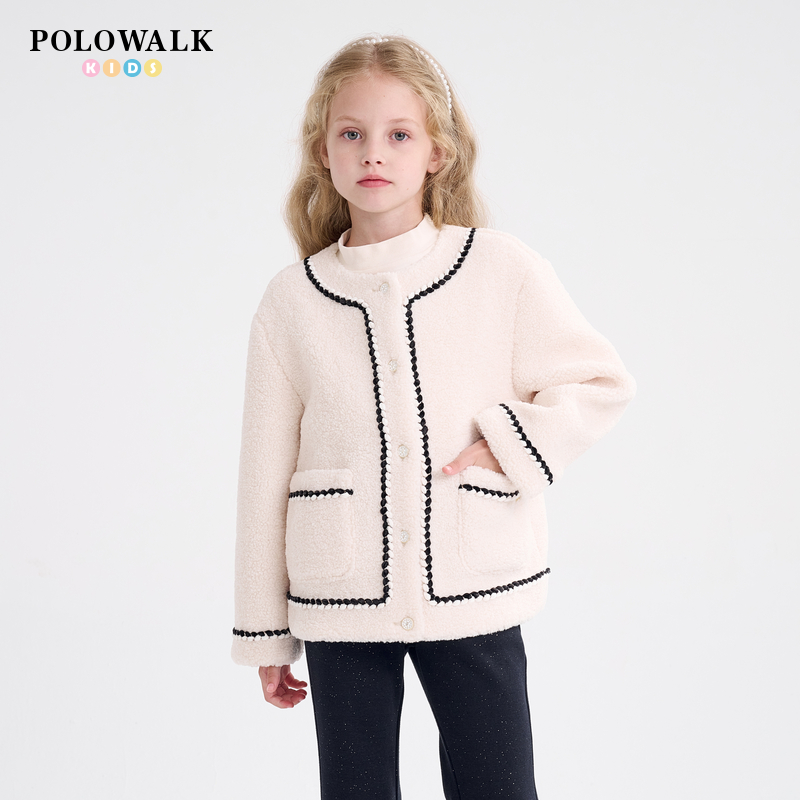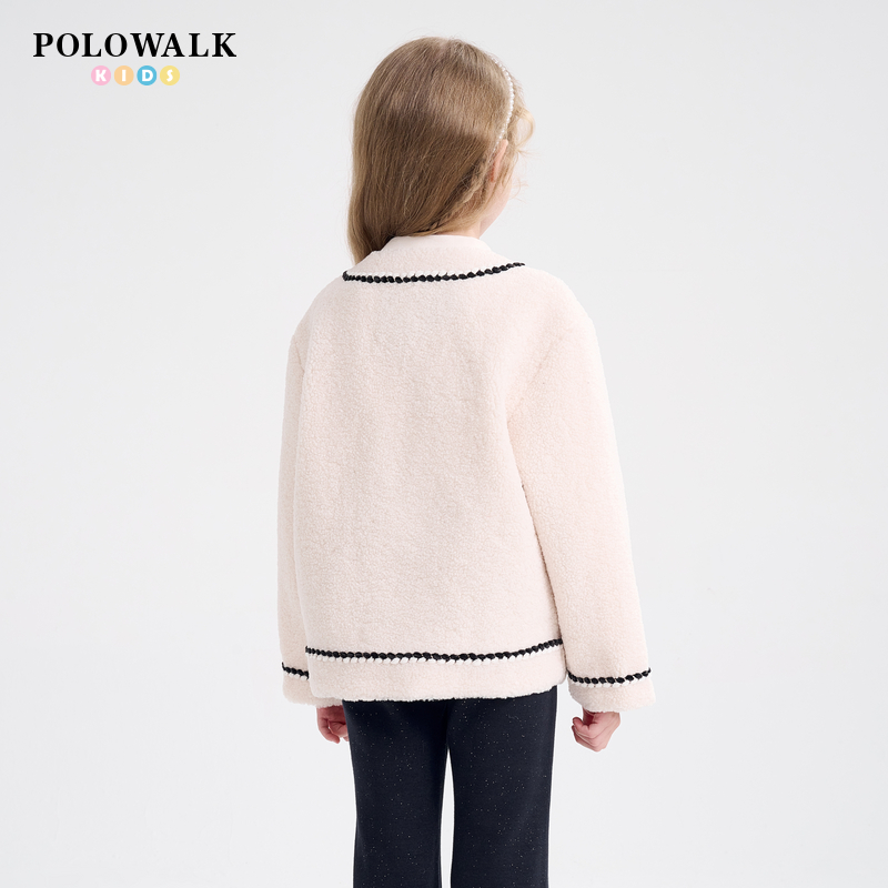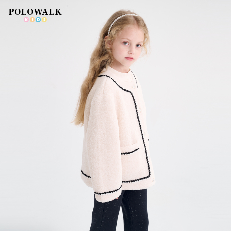 POLOWALK童装女童外套2025秋冬新品中大童羊羔绒时尚甜美百搭棉服