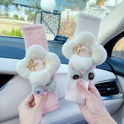 汽车安全带护肩套可爱花朵毛绒公仔车载装饰高级卡通车上内饰女士