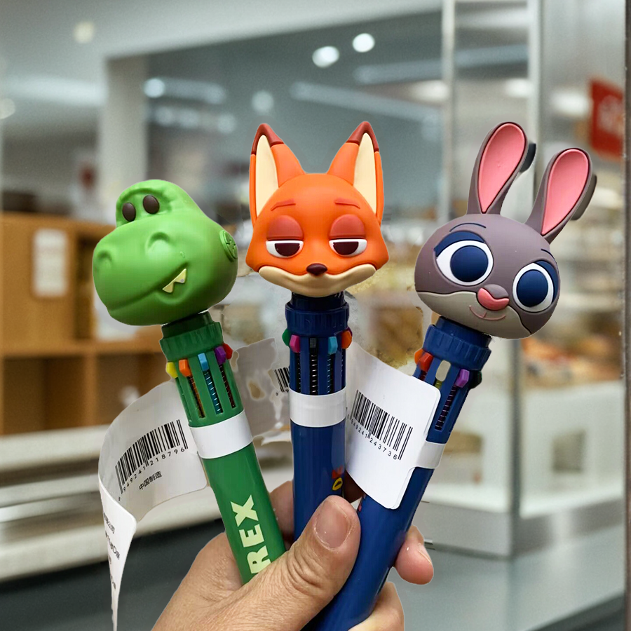 迪士尼新品卡通十色笔草莓熊唐老鸭可爱按压手账多色学生圆珠笔