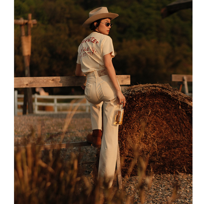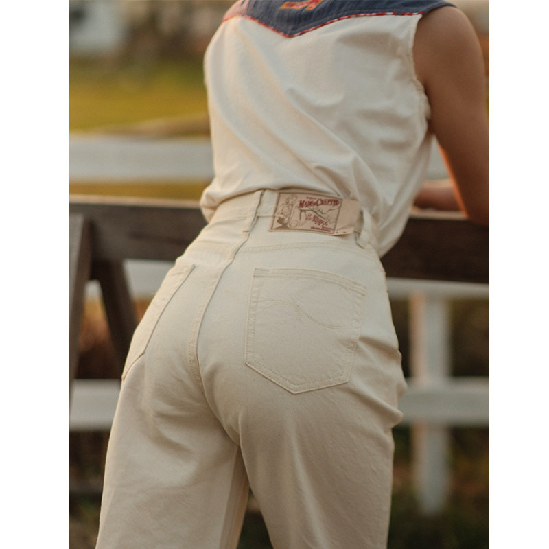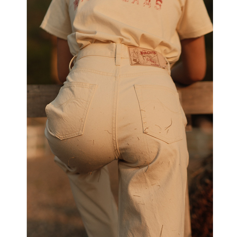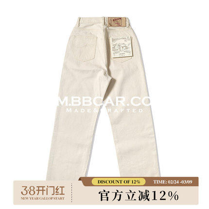 MBBCAR窄幅 梦露 11OZ棉籽壳白胚棉麻质感高腰阔腿赤耳丹宁牛仔裤