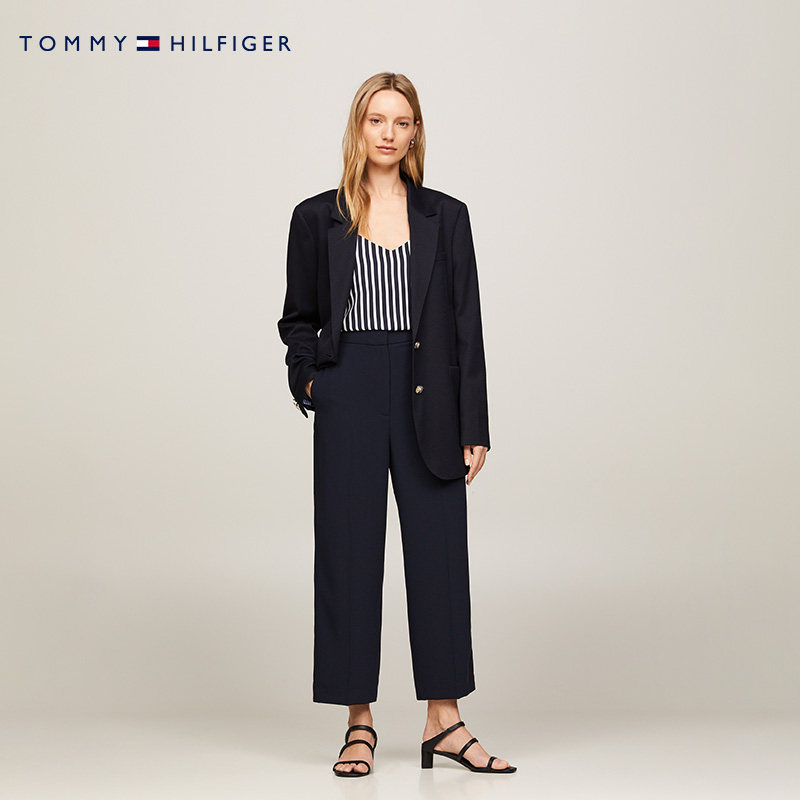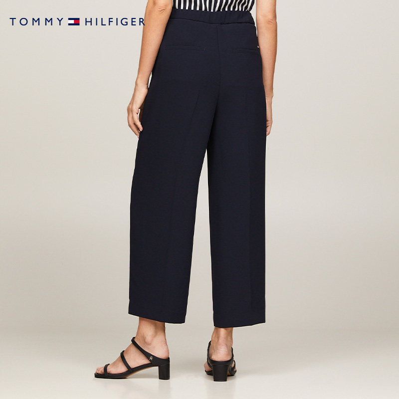 Tommy秋冬女装垂顺暗襟半松紧腰商务气质通勤职场宽松阔腿休闲裤
