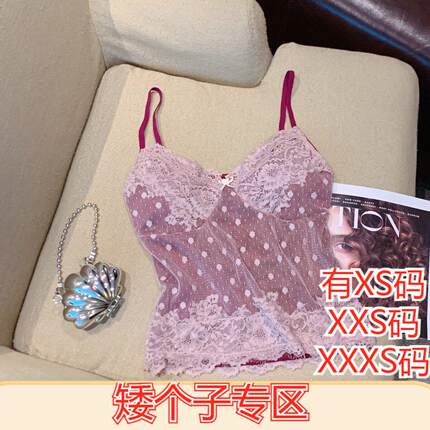 春装矮个子女装加小码XXXS150cm显高带胸垫美背网纱拼接吊带抹胸