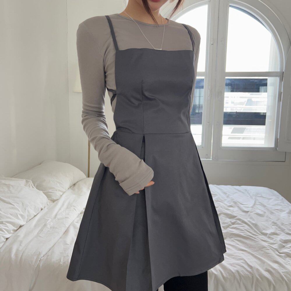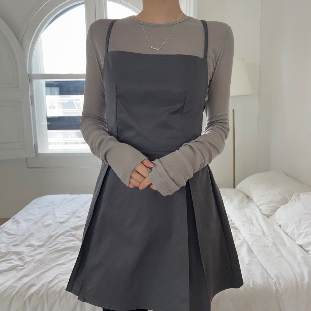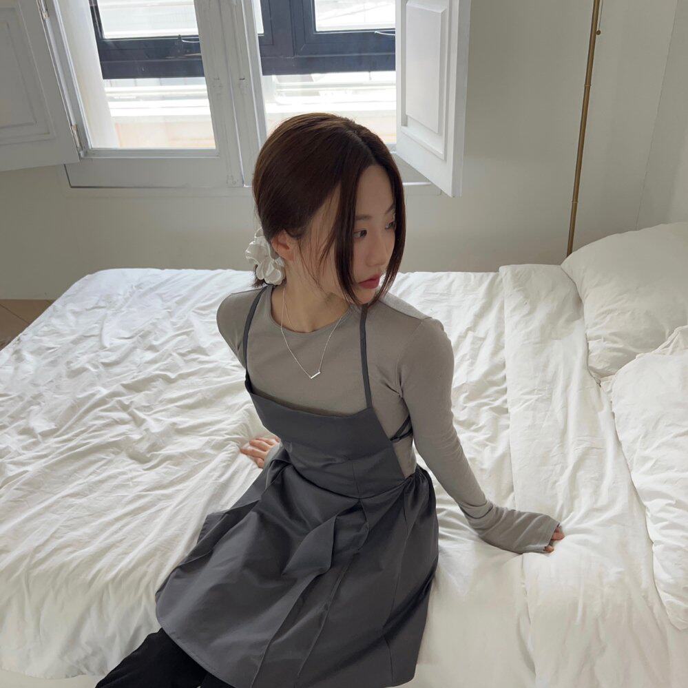 chic 韩版春夏季时尚复古露背系带收腰叠穿百搭吊带背心连衣裙