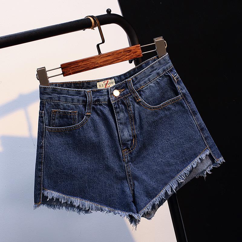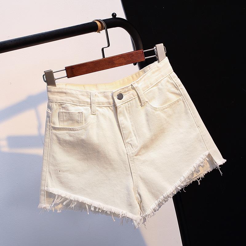 白色牛仔短裤女夏 2018新款黑色高腰阔腿宽松毛边韩版学生a字热裤