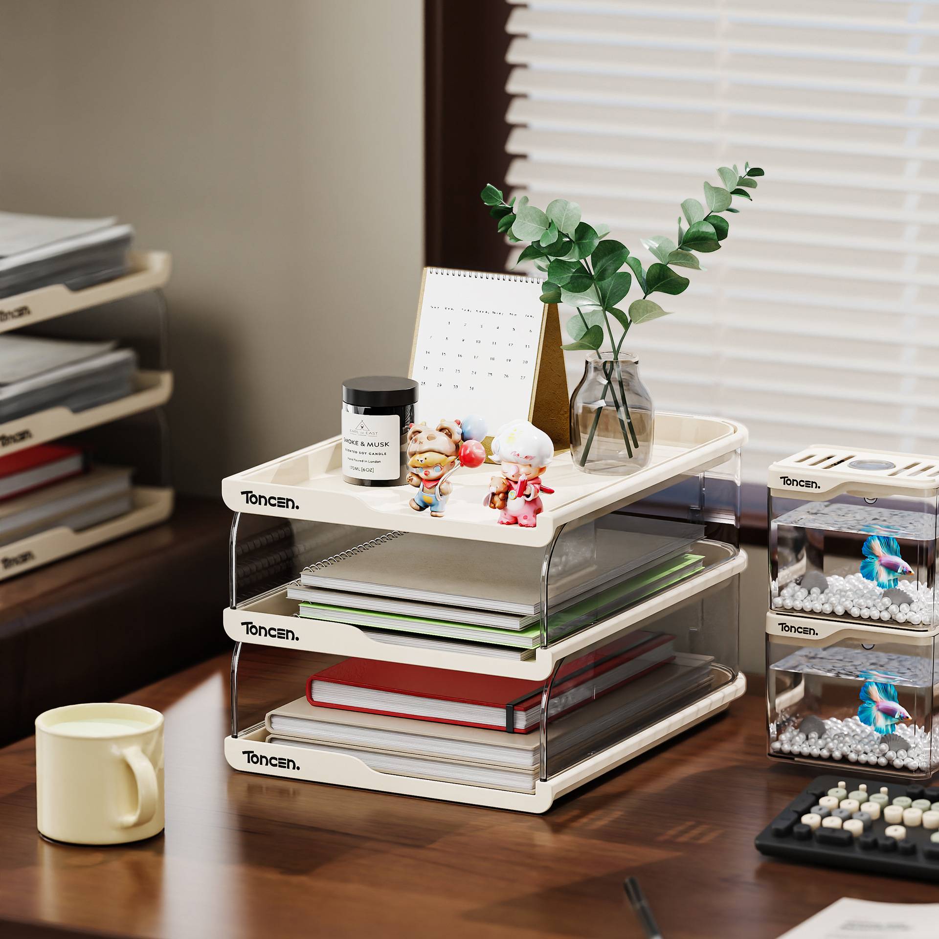 桌面收纳置物架可叠加多层分格文件框办公室A4纸文档资料收纳盒