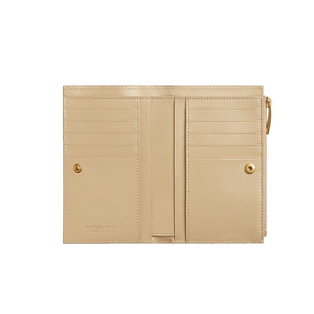 Bottega Veneta/葆蝶家 23新款 女士中号棕色小羊皮拉链双折钱包
