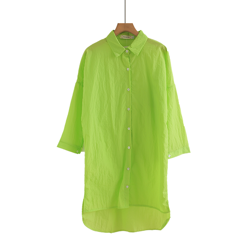 绿色防晒衬衫女夏薄款轻奢高级感慵懒松弛感宽松蝙蝠袖长款防晒衣