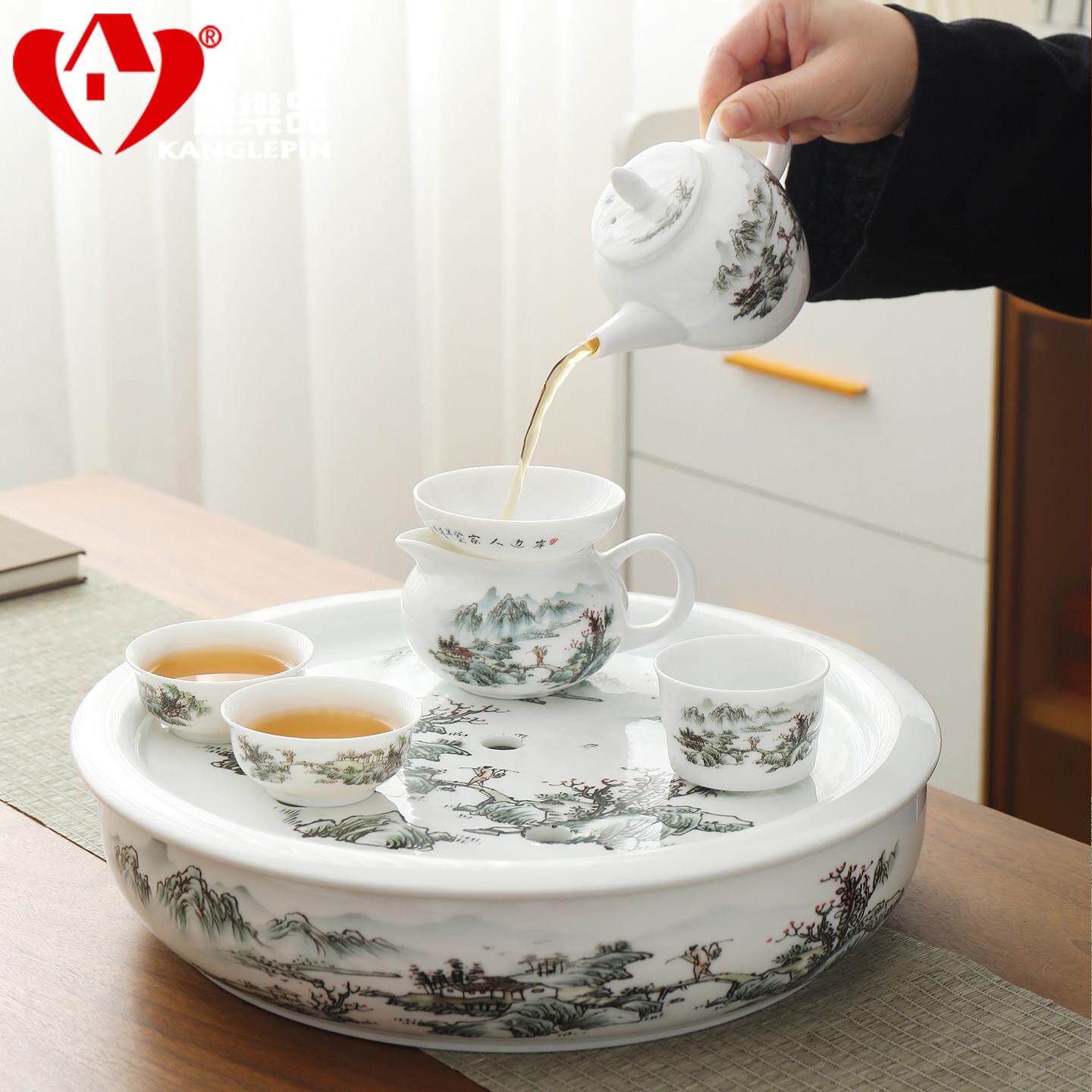 高白瓷功夫茶具套装景德镇陶瓷茶壶茶杯茶盘高档送长辈父亲节礼物