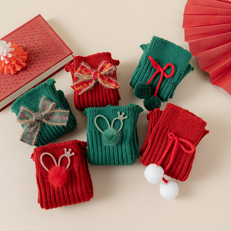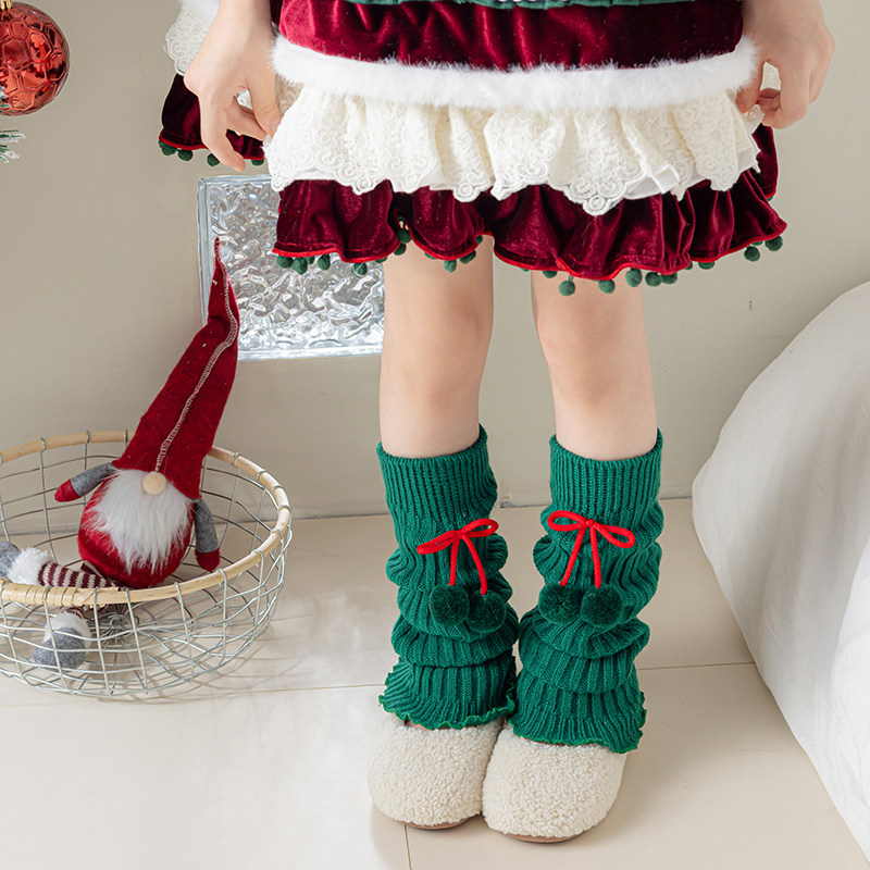 儿童圣诞袜套秋冬女童红绿色新年长筒小腿套宝宝加厚保暖护膝长袜