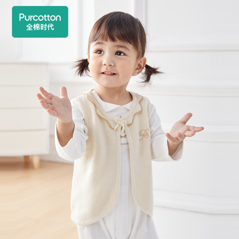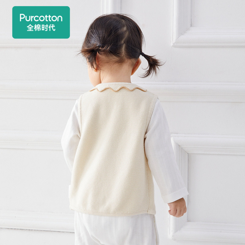 全棉时代童装婴儿花边领马甲2022春秋新款纯棉可爱女童宝宝背心