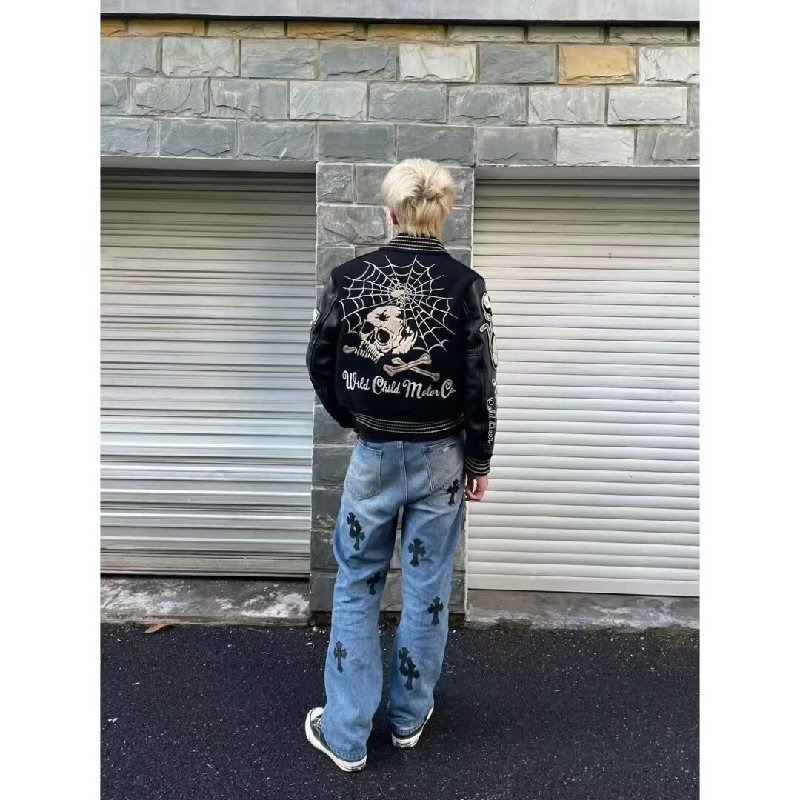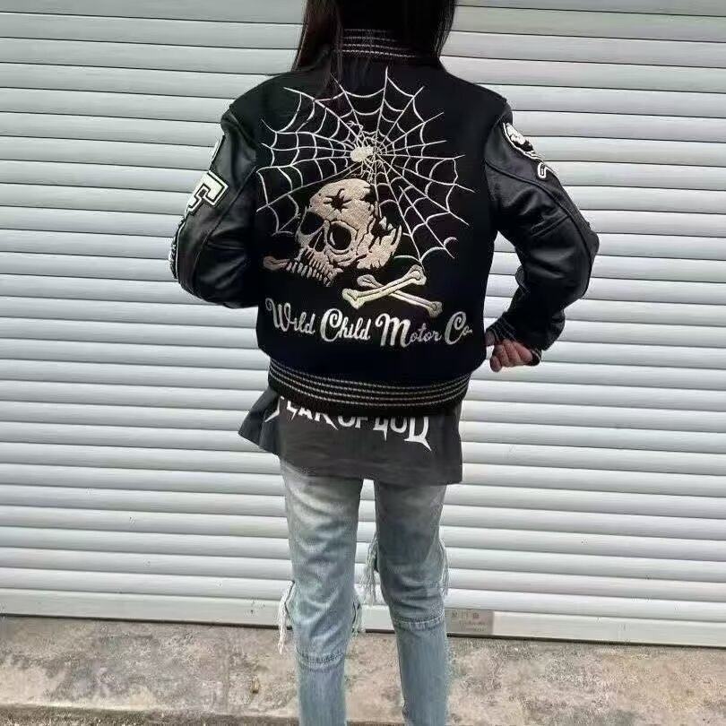 美式高街拼接字母刺绣夹克棒球服男女春季新款潮牌青少年学生外套