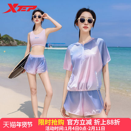 特步分体三件套泳衣女2025新款遮肚显瘦大码海边度假泡温泉游泳装