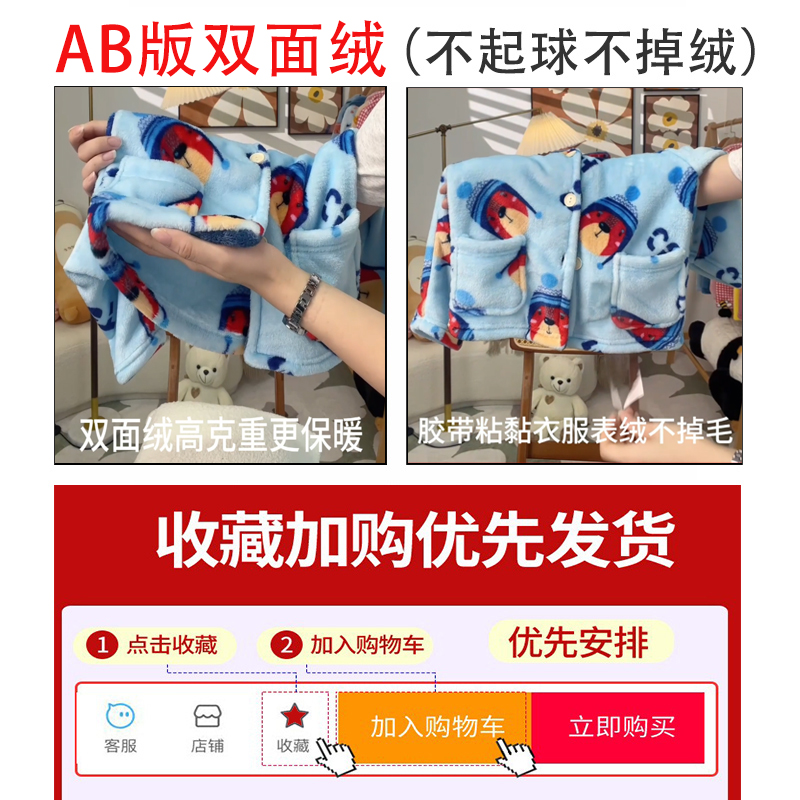 秋冬季儿童法兰绒睡衣男童女童加厚珊瑚绒宝宝保暖卡通家居服套装
