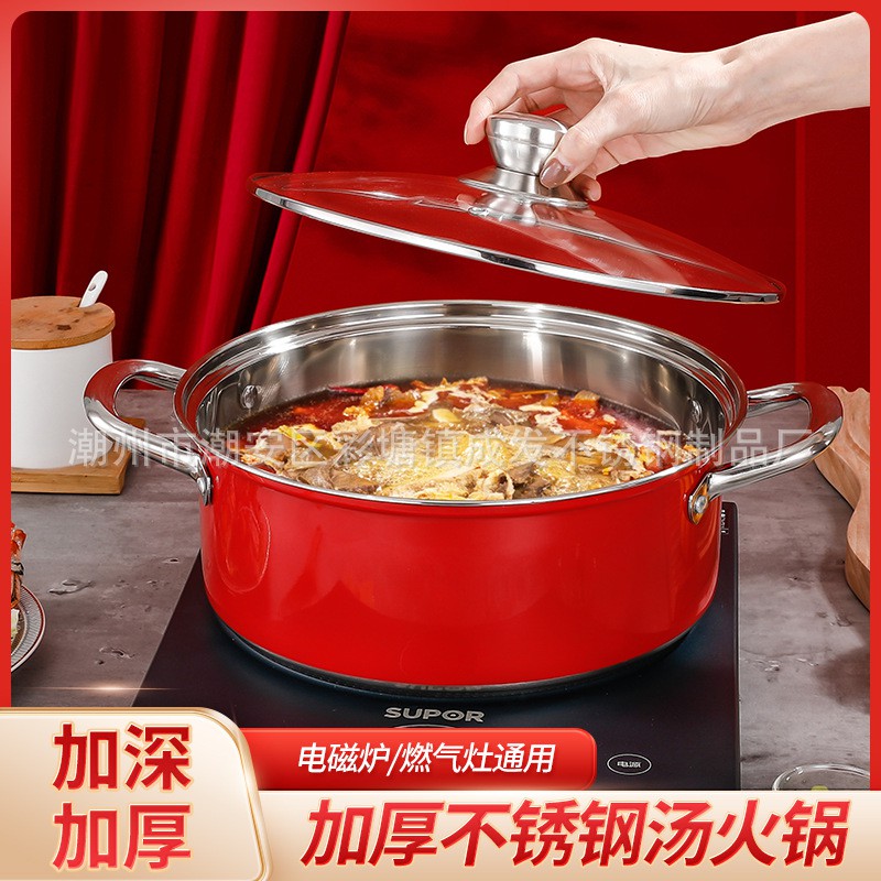 2024龙年开门红礼品锅具加厚不锈钢火锅一体锅专用锅大容量汤锅