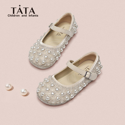 TATA童鞋女童演出鞋2025春新款爱莎水晶公主鞋子软底宝宝珍珠单鞋