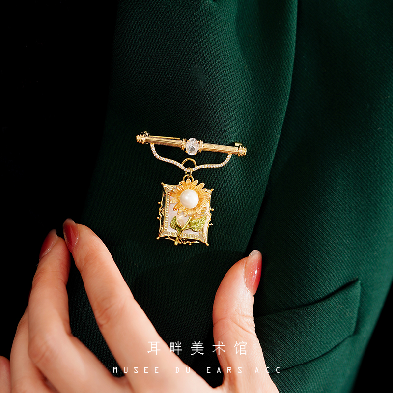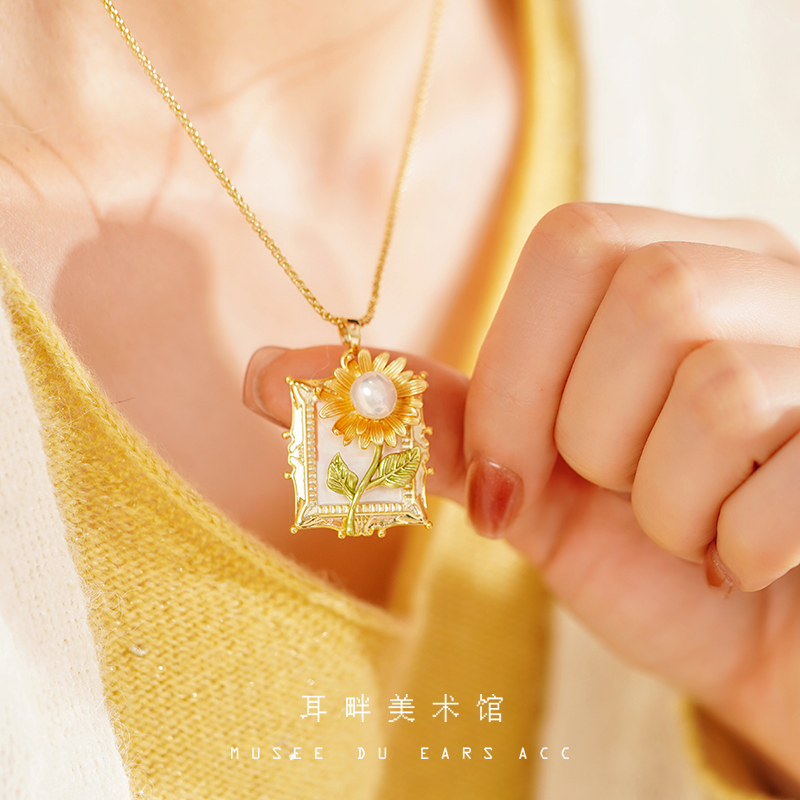 A2025新向日葵耳环女项链套装胸针高端精致时尚轻奢礼物气质胸花