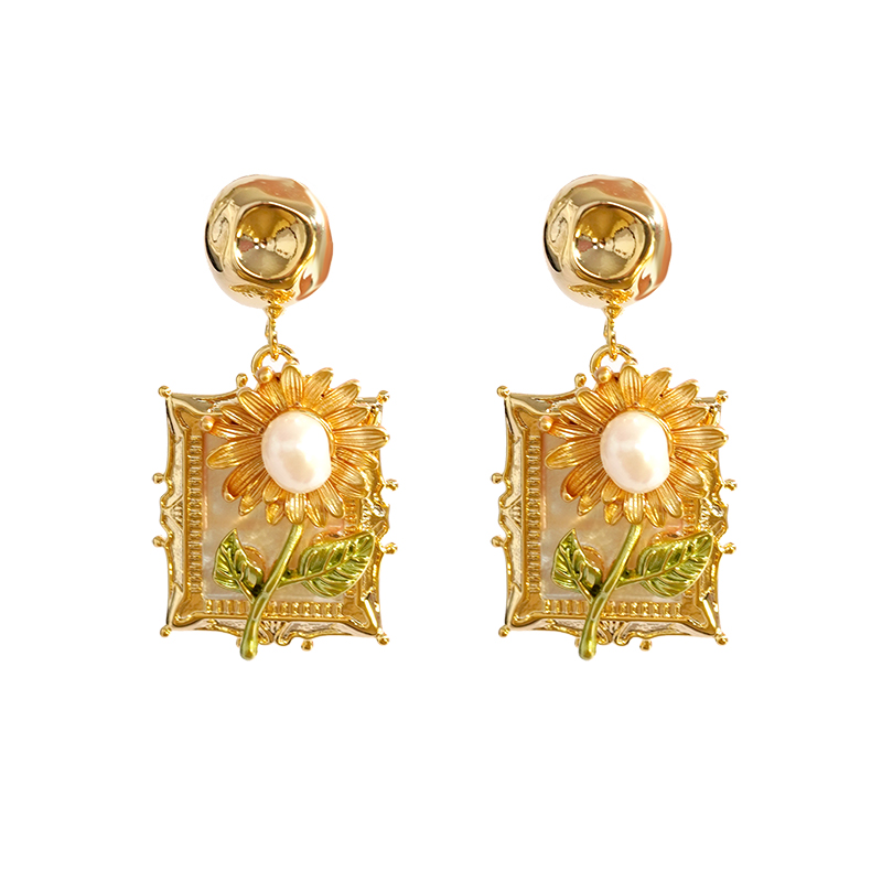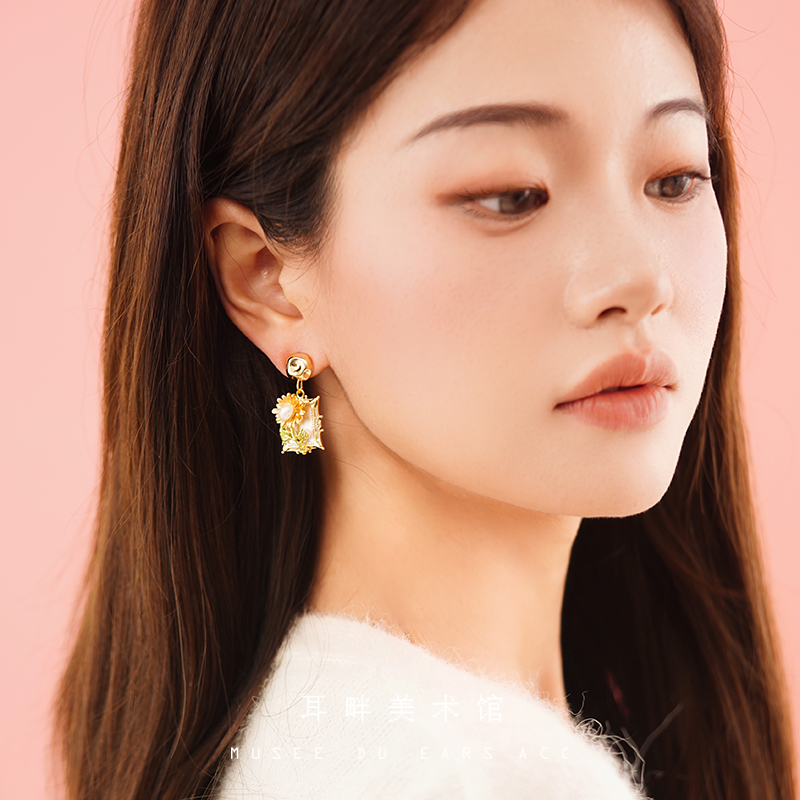 A梵高油画感向日葵耳环女款