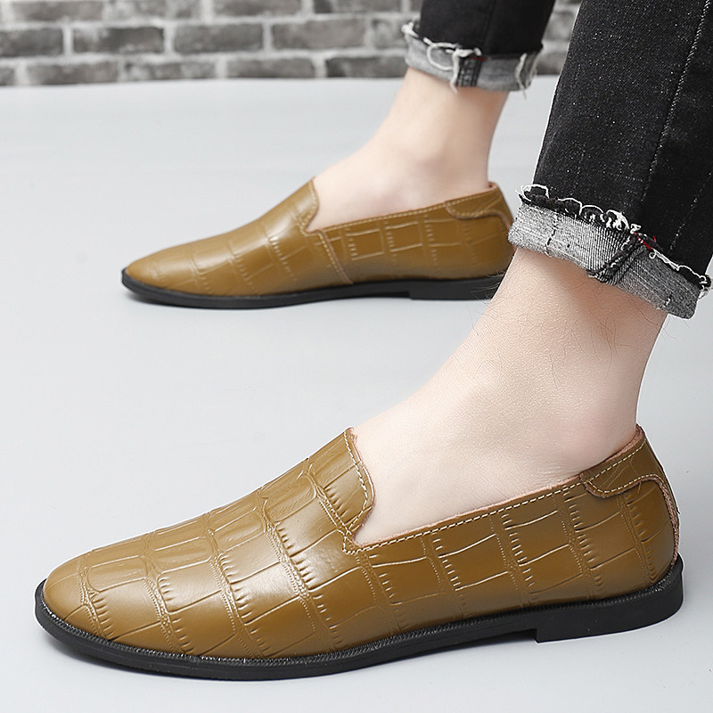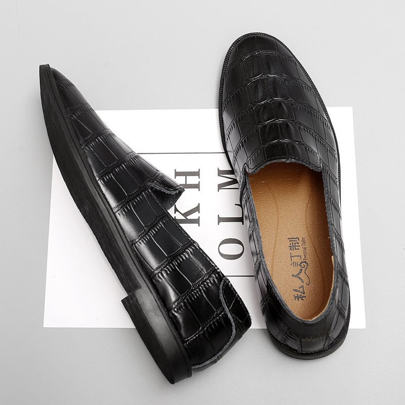 尖头休闲男皮鞋2025新款轻便软低真皮小码时尚潮流一脚蹬豆豆鞋男
