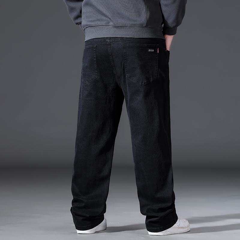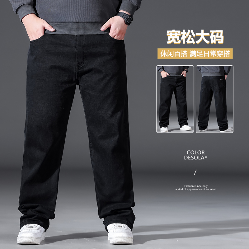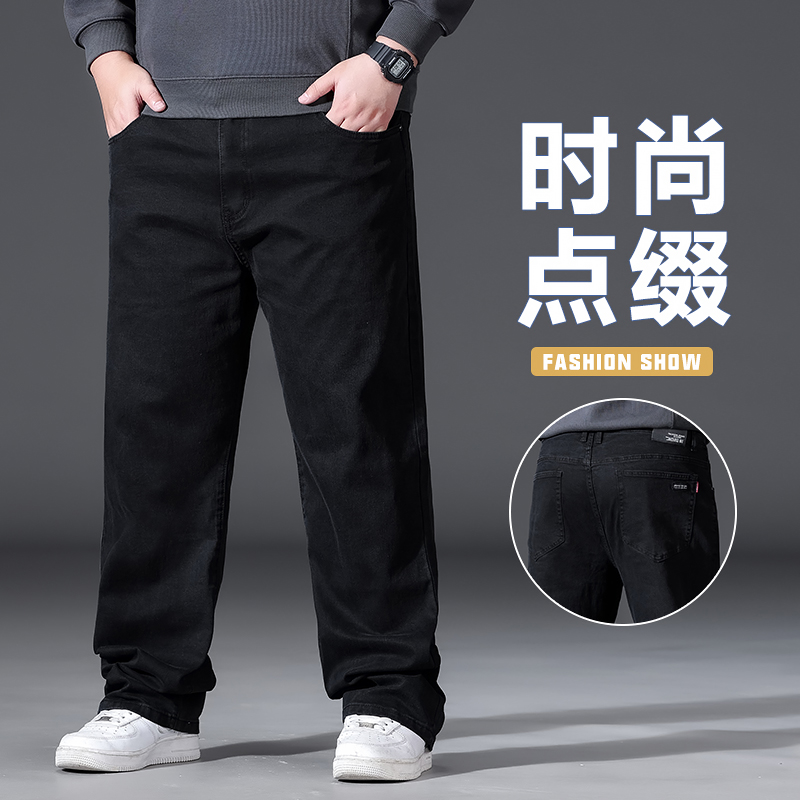 牛仔裤男大码宽松直筒高腰弹力黑色休闲裤胖子加肥加大男款秋冬季
