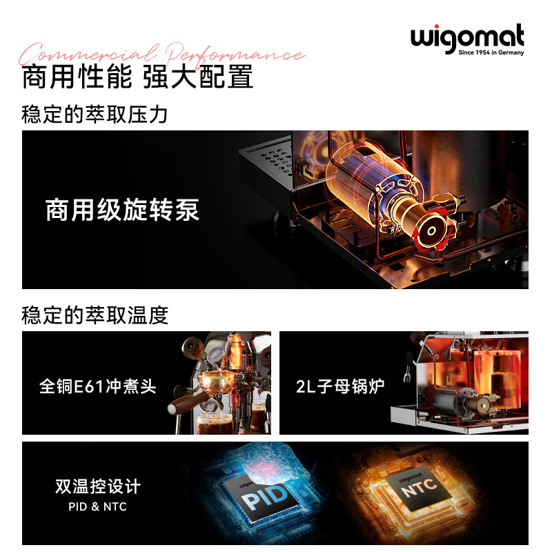[情人节礼物]wigomat唯咖美W12半自动咖啡机家商用小型E61旋转泵