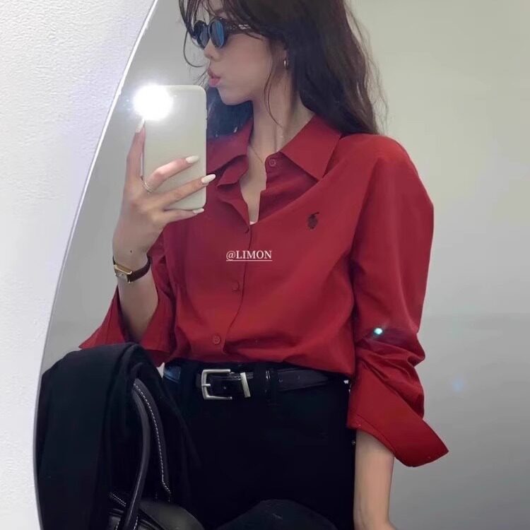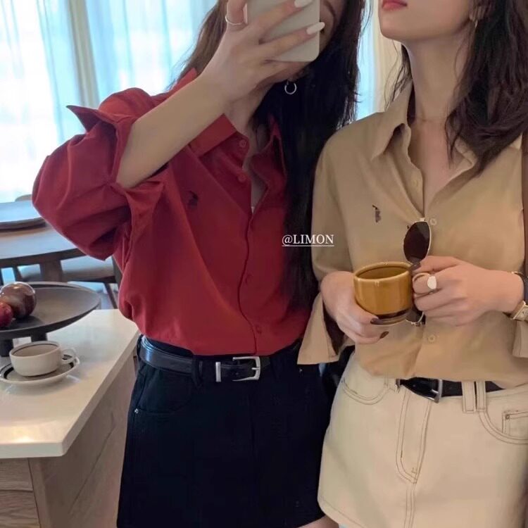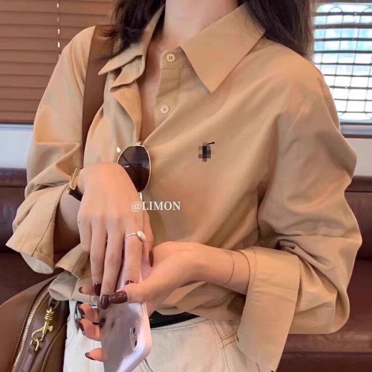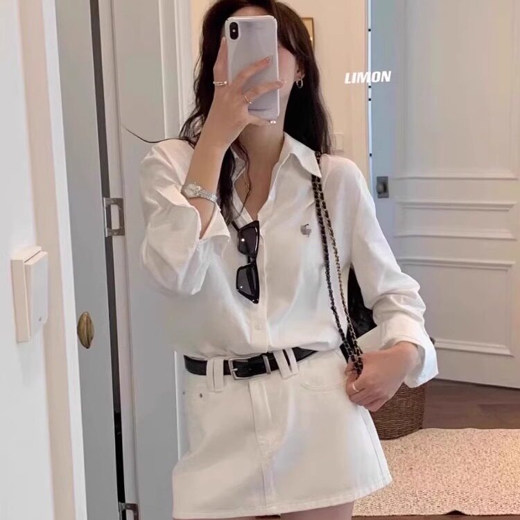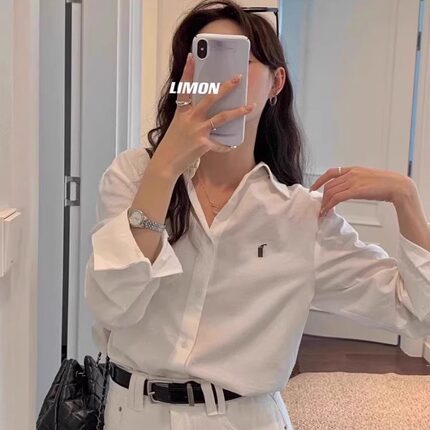 时尚通勤风长袖宽松刺绣白色衬衫