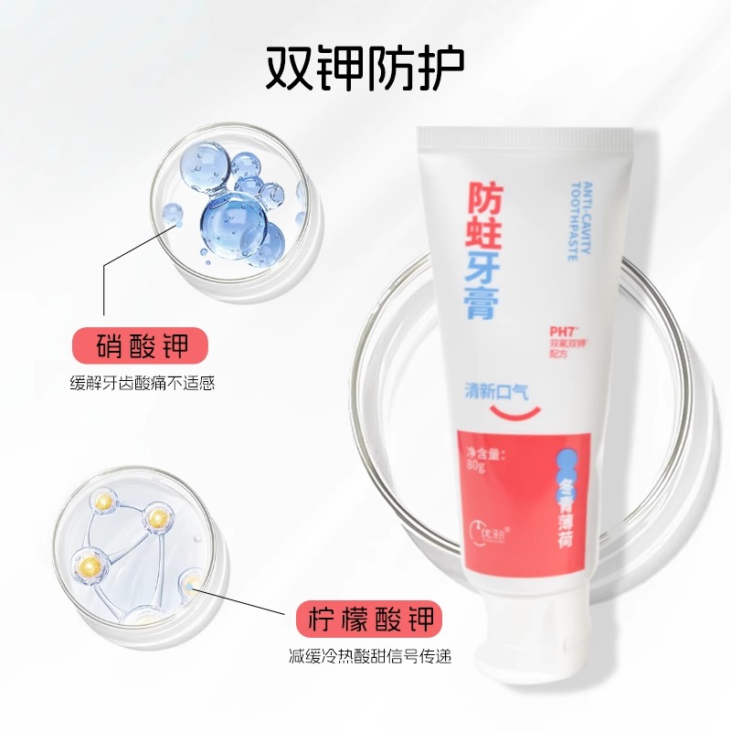 优牙合ph7含氟防蛀牙膏80g 冬青薄荷味清新口气防蛀固齿