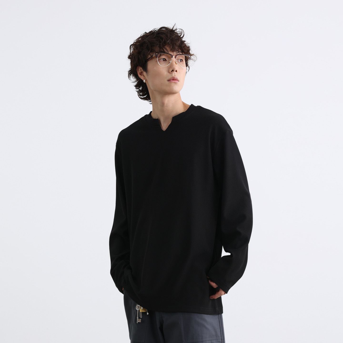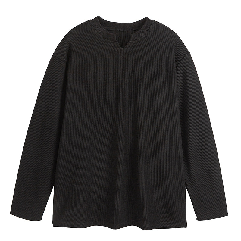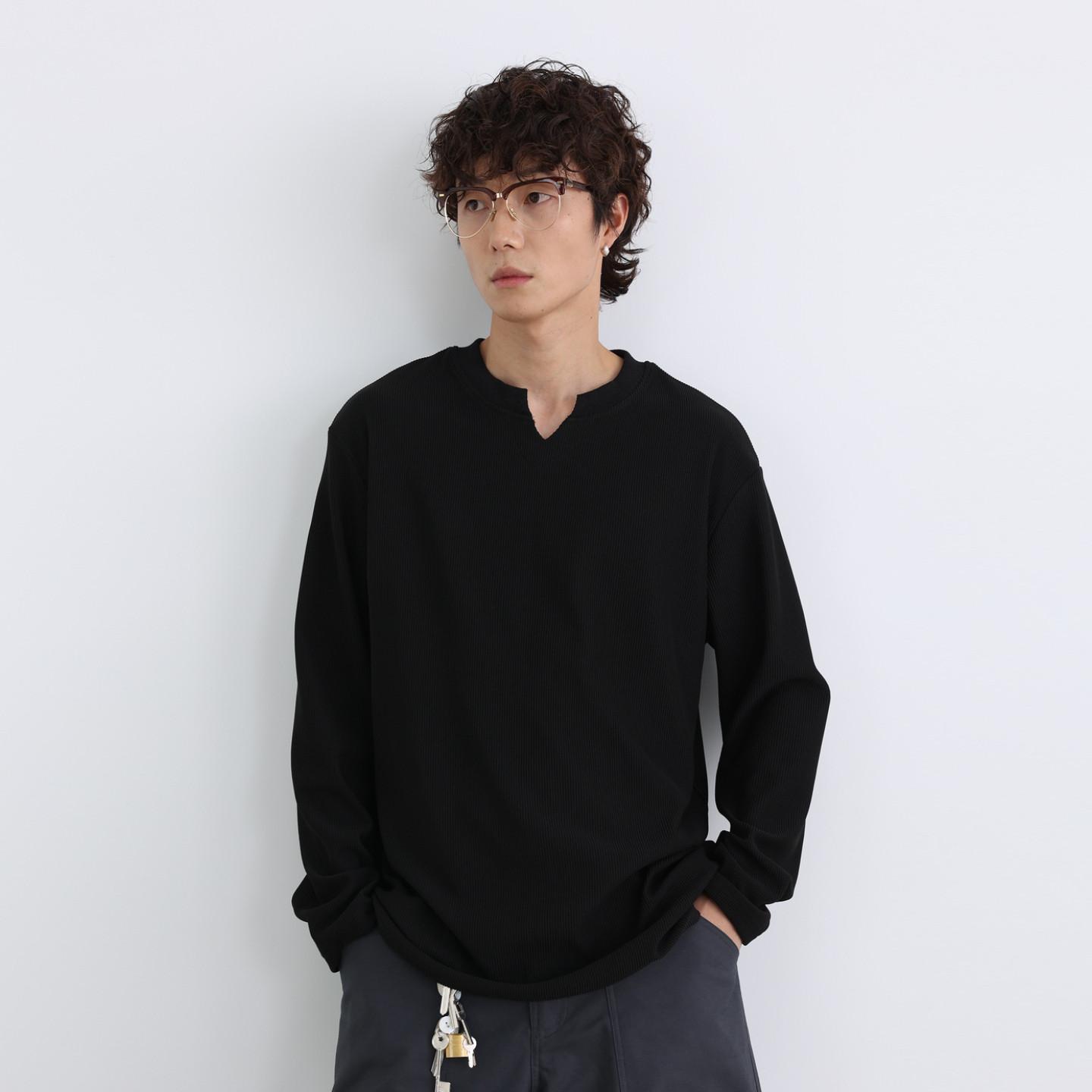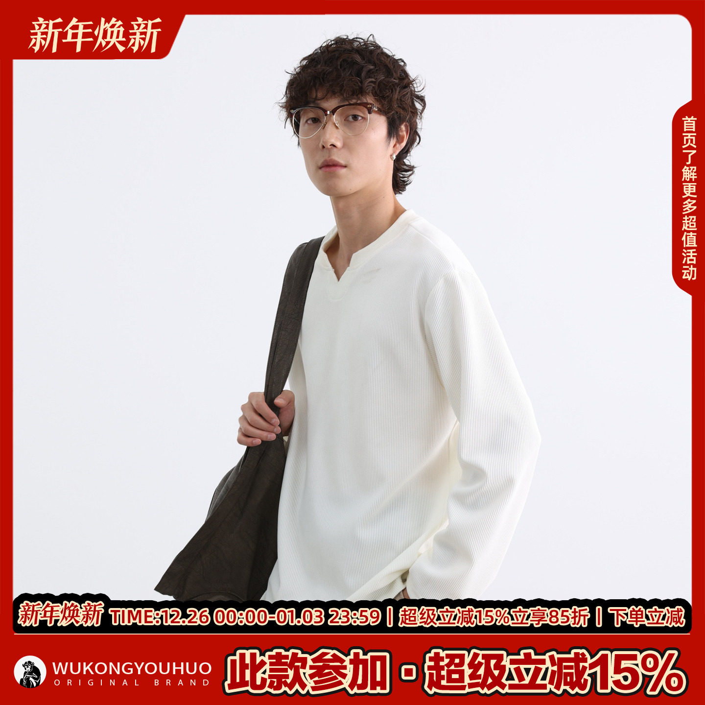 悟空有货2025秋季肌理感小V领长袖T恤男简约宽松纯色内搭打底上衣