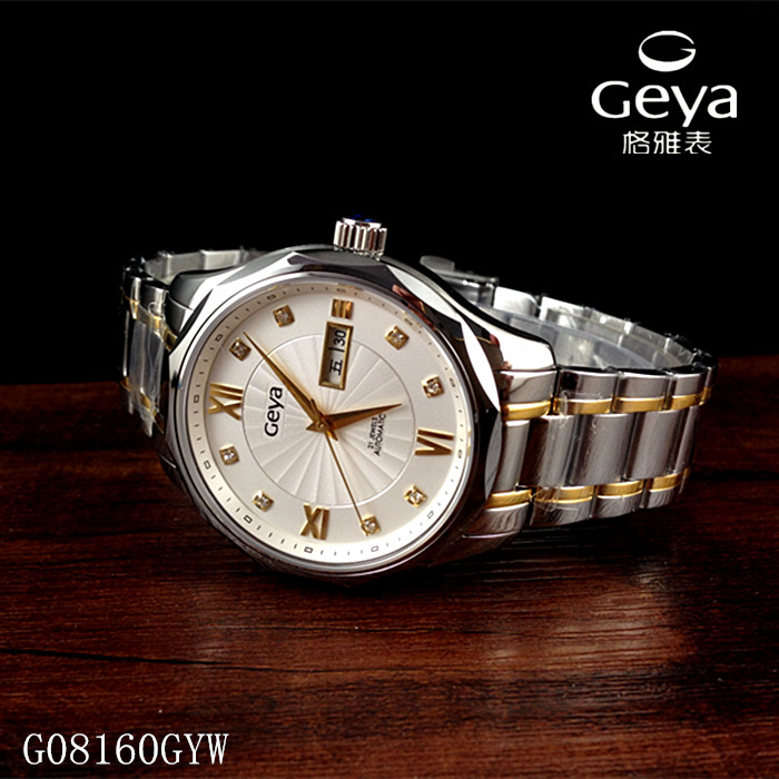 geya格雅男表 正品全自动机械手表 男表钢带G08160GWK双日历8160