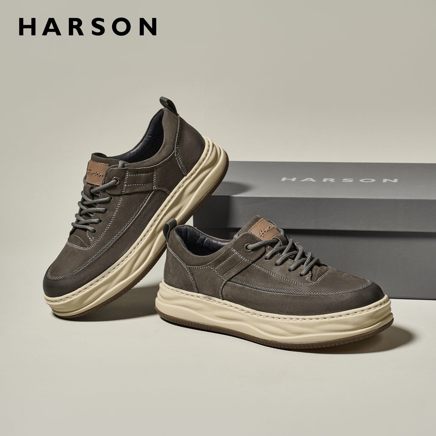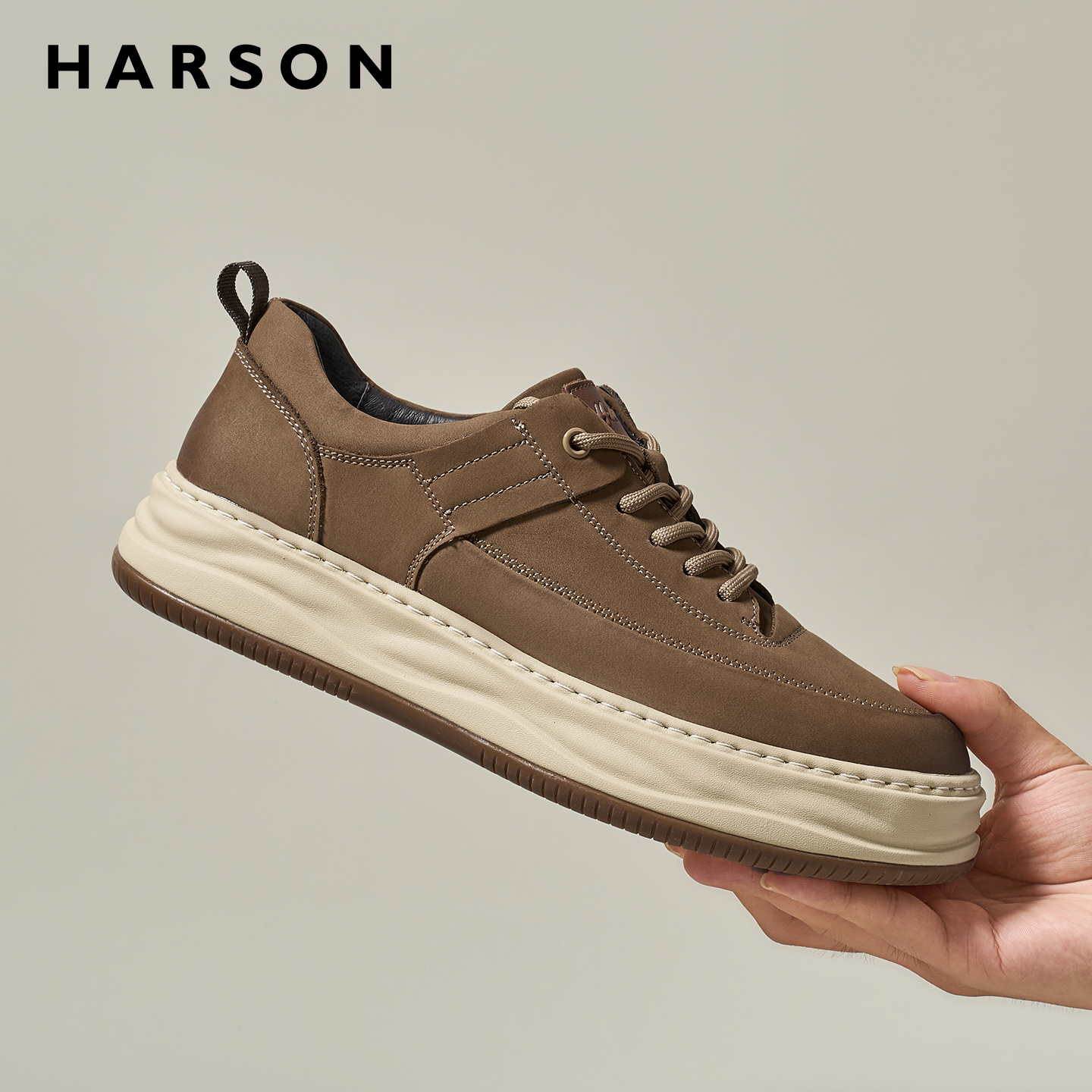 哈森男鞋秋新款牛皮厚底休闲板鞋男士休闲皮鞋增高真皮软底休闲鞋