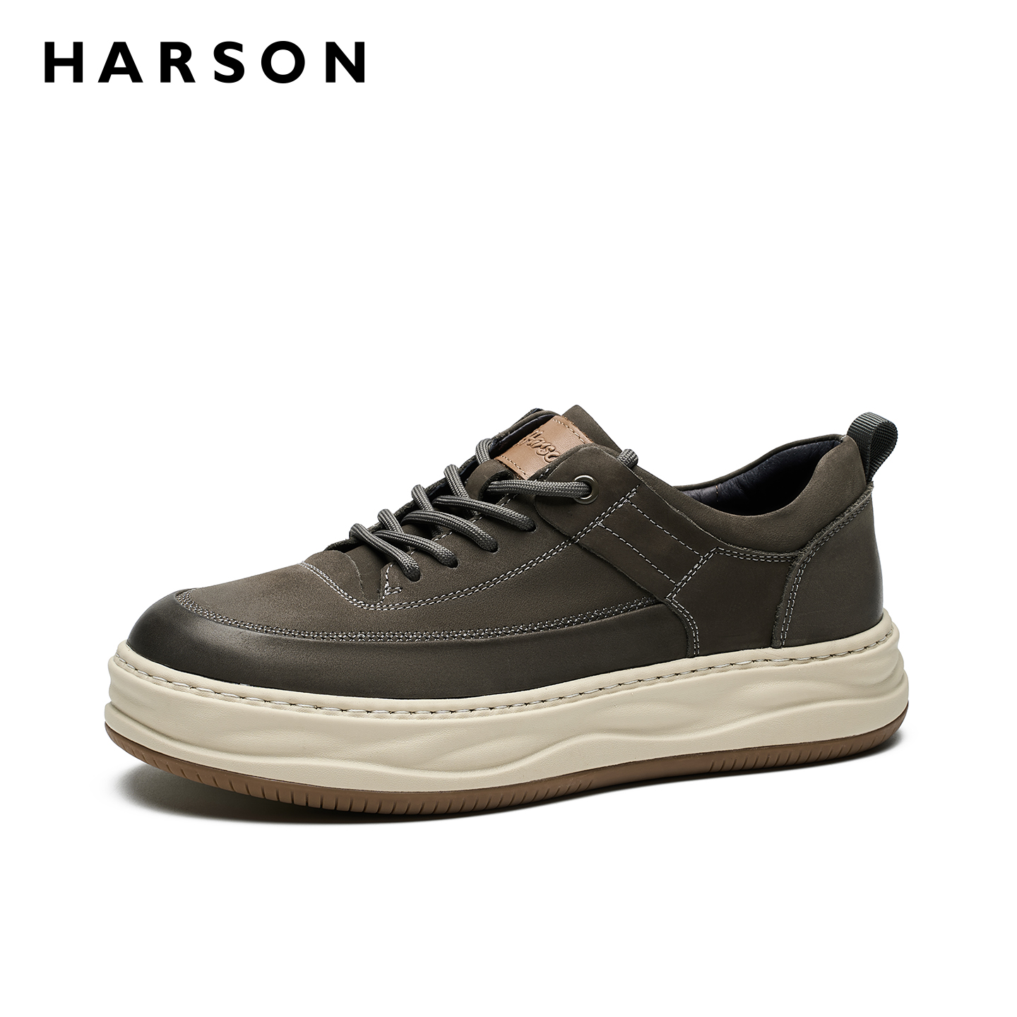 哈森男鞋秋新款牛皮厚底休闲板鞋