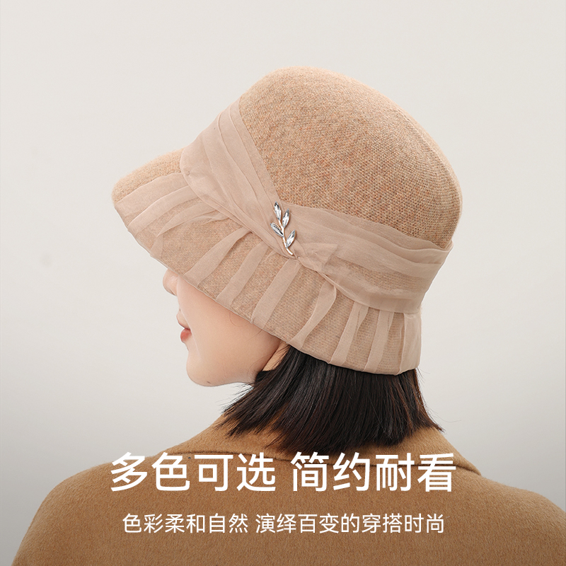 上海故事2025新款秋冬纯色帽子女羊毛渔夫帽保暖加厚时尚复古礼盒