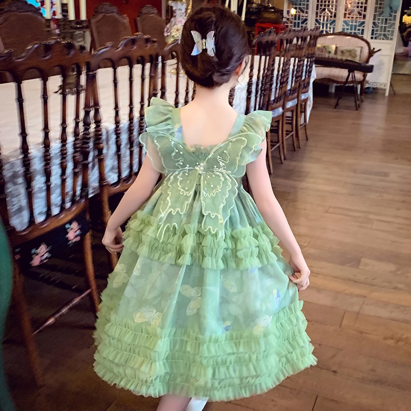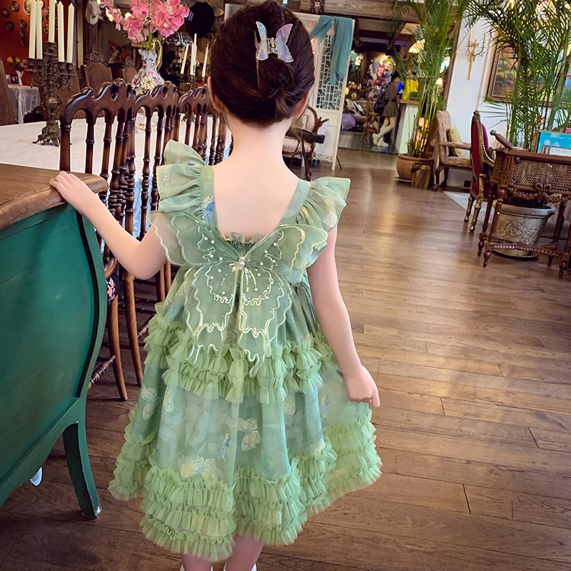 女童连衣裙夏装2024新款儿童网红蝴蝶结吊带裙女孩蓬蓬网纱公主裙