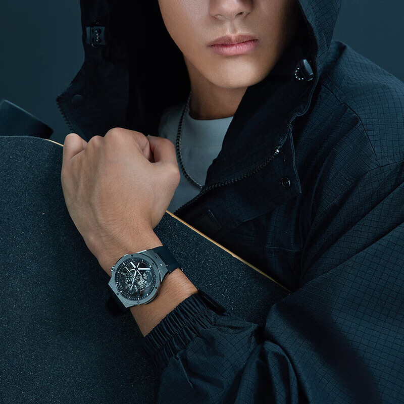 雷诺镂空运动男士夜光机械手表