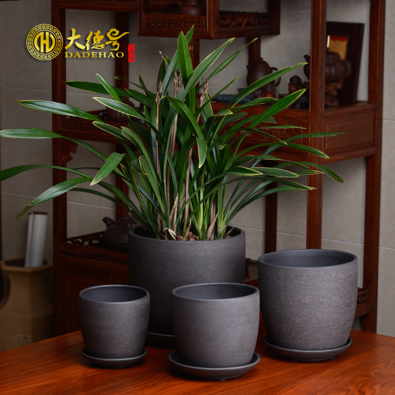 粗陶肉肉花盆宜兴紫砂君子兰花盆多肉G植物创意简约陶瓷花盆带托