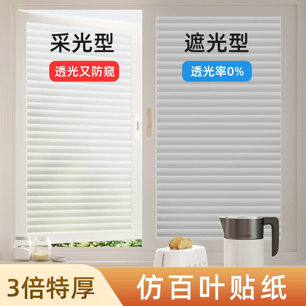 仿百叶纹窗户玻璃贴纸全遮光防晒隔热遮阳浴室卫生间防窥隐私贴膜