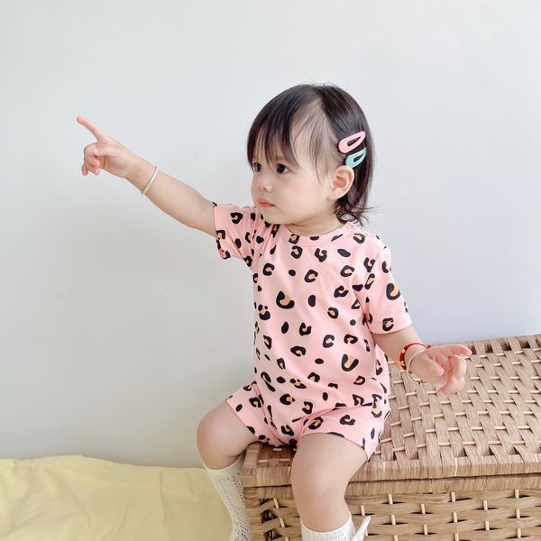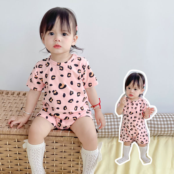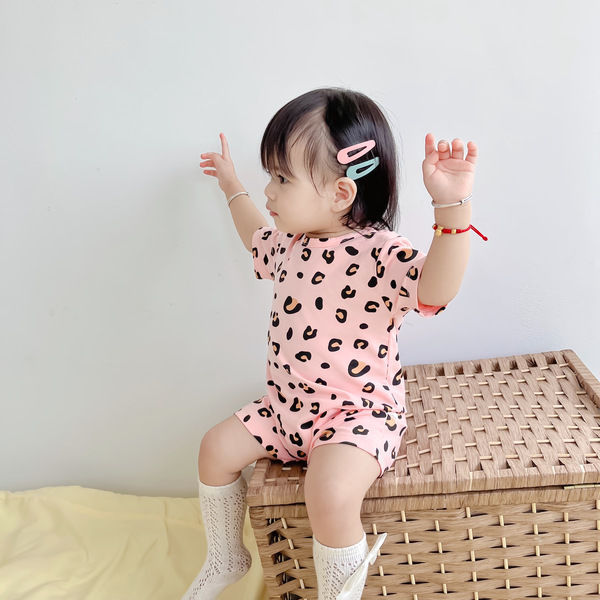 豹纹连体衣婴儿夏季豹纹哈衣可爱超萌宝宝薄款纯棉连体衣洋气女婴