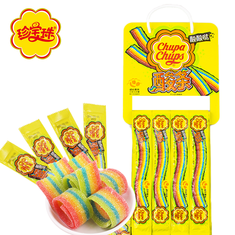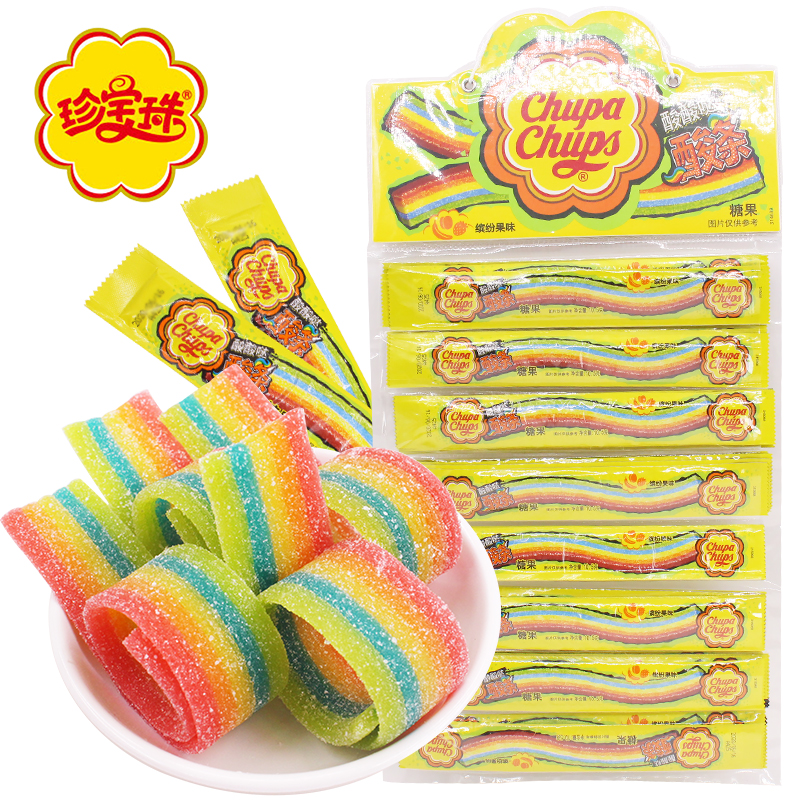 珍宝珠酸条软糖彩虹酸砂橡皮糖儿童零食水果万圣节棒棒糖阿尔卑斯