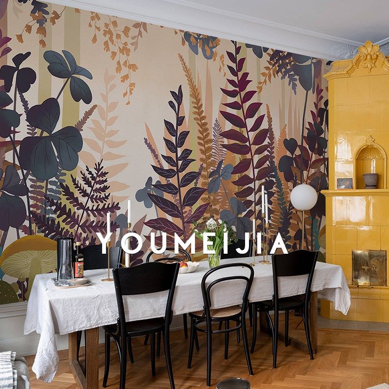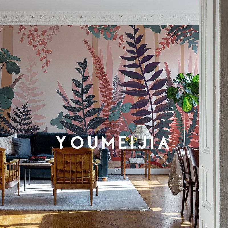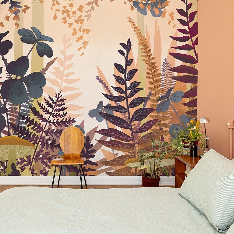 手绘植物森林壁纸客厅沙发墙布无缝壁布卧室电视背景墙纸定制壁画