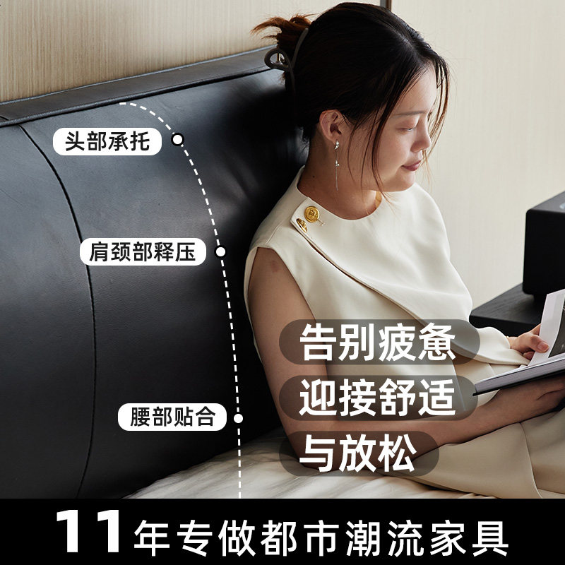 头层牛皮轻奢真皮软包皮艺床双人