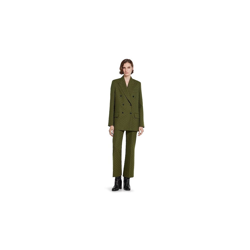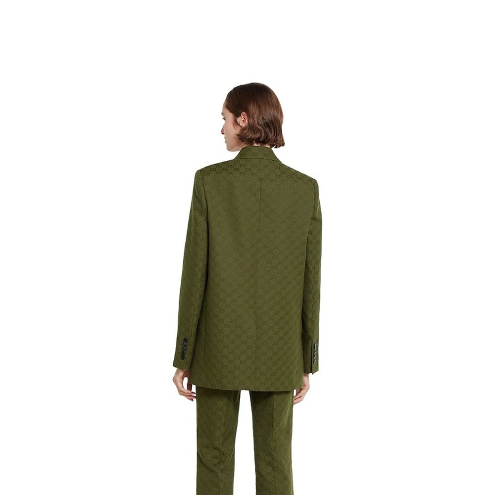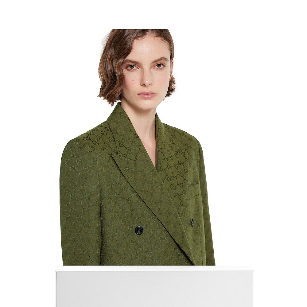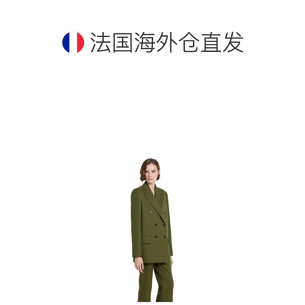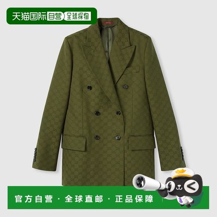 自营欧洲直邮Gucci/古驰 女士森林绿帆布双G双排扣夹克