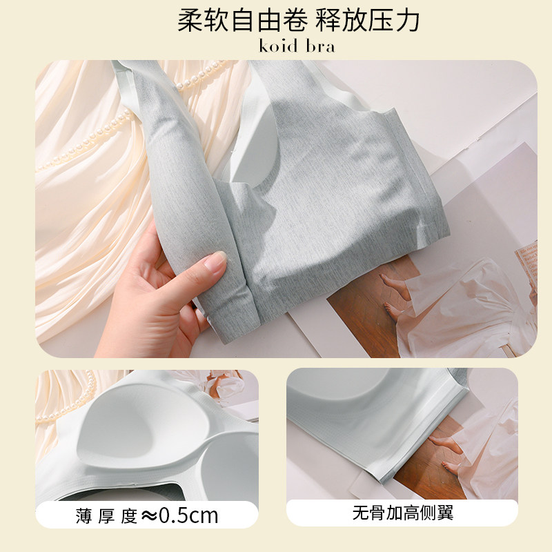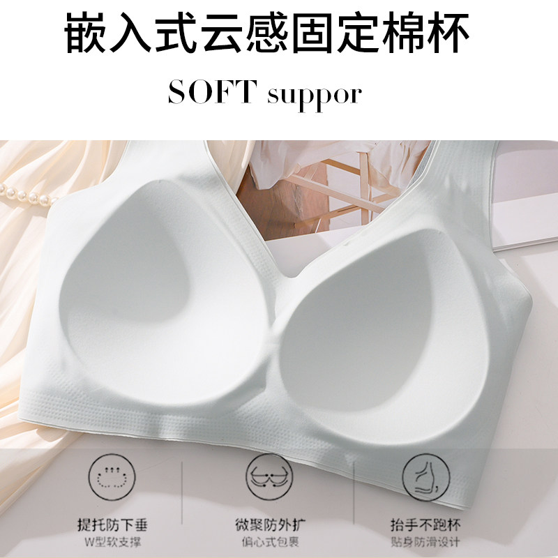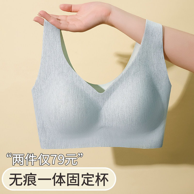 无痕内衣女夏季薄款一体式固定杯大胸显小胸聚拢背心式妈妈文胸罩